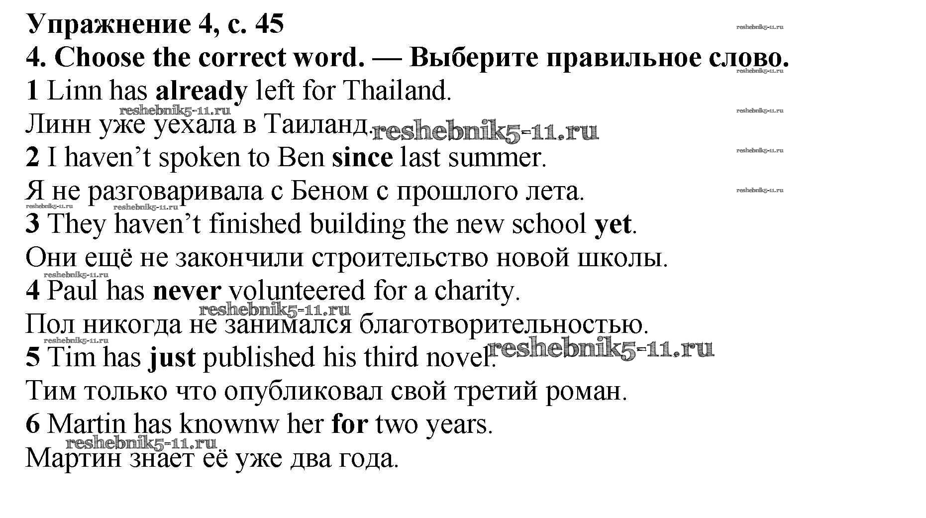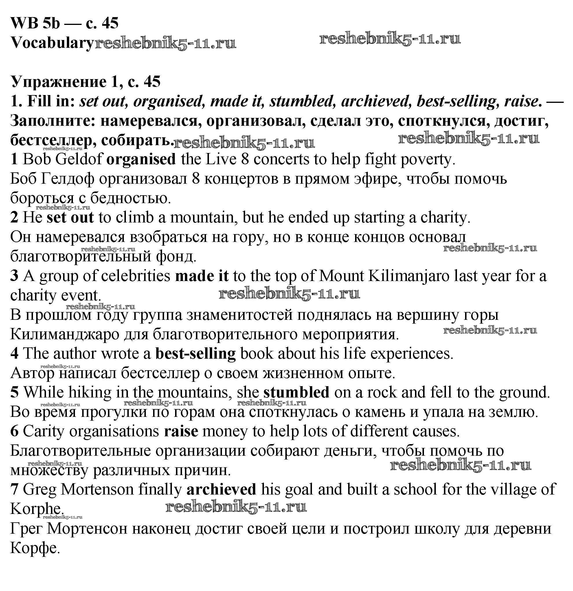 Готовая домашняя работа с ответами по Английскому языку за 6 класс Мильруд, Эванс, Дули, Баранова, Копылова Рабочая тетрадь Starlight Углубленный уровень Просвещение 2020 ФГОС - Страницы 45