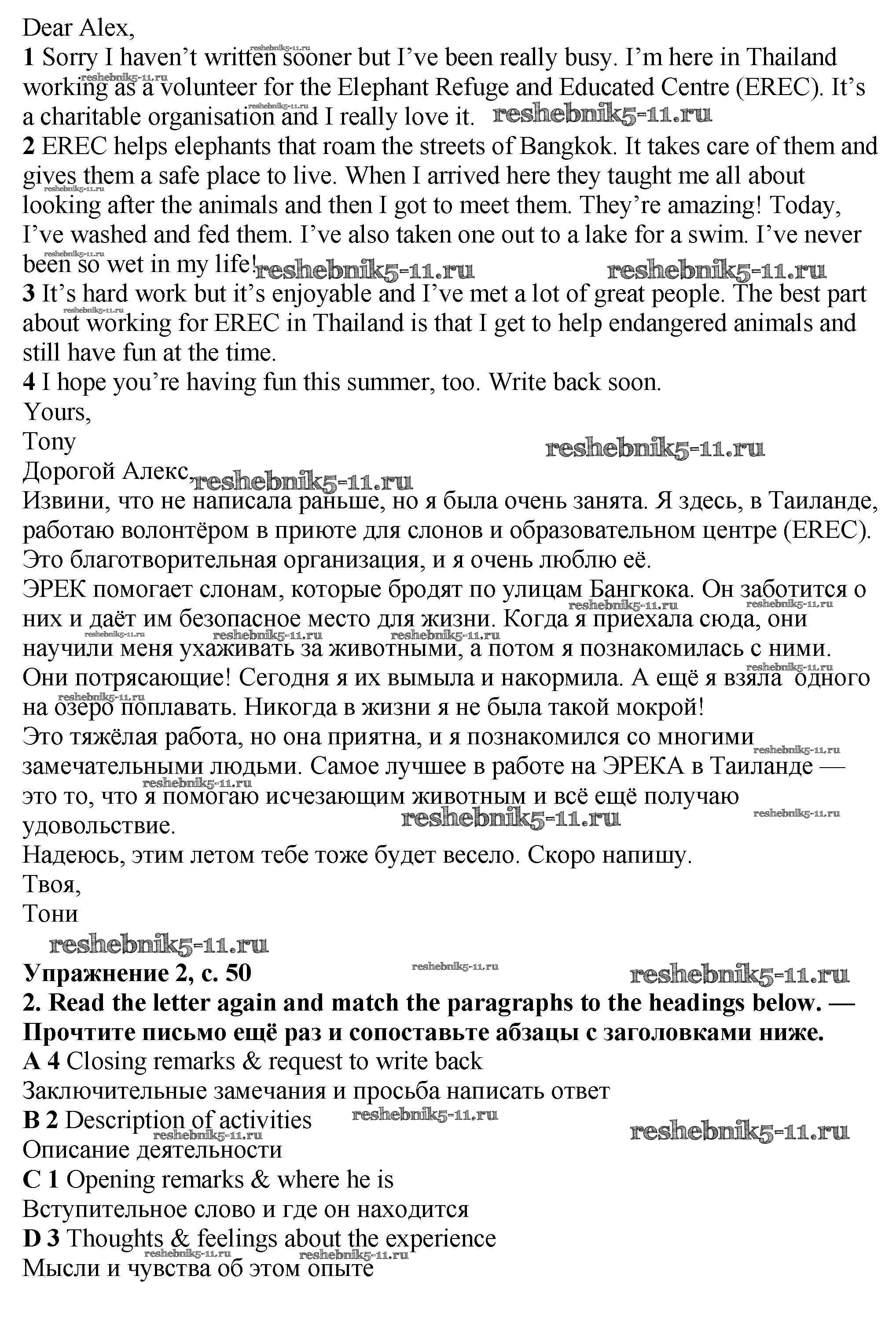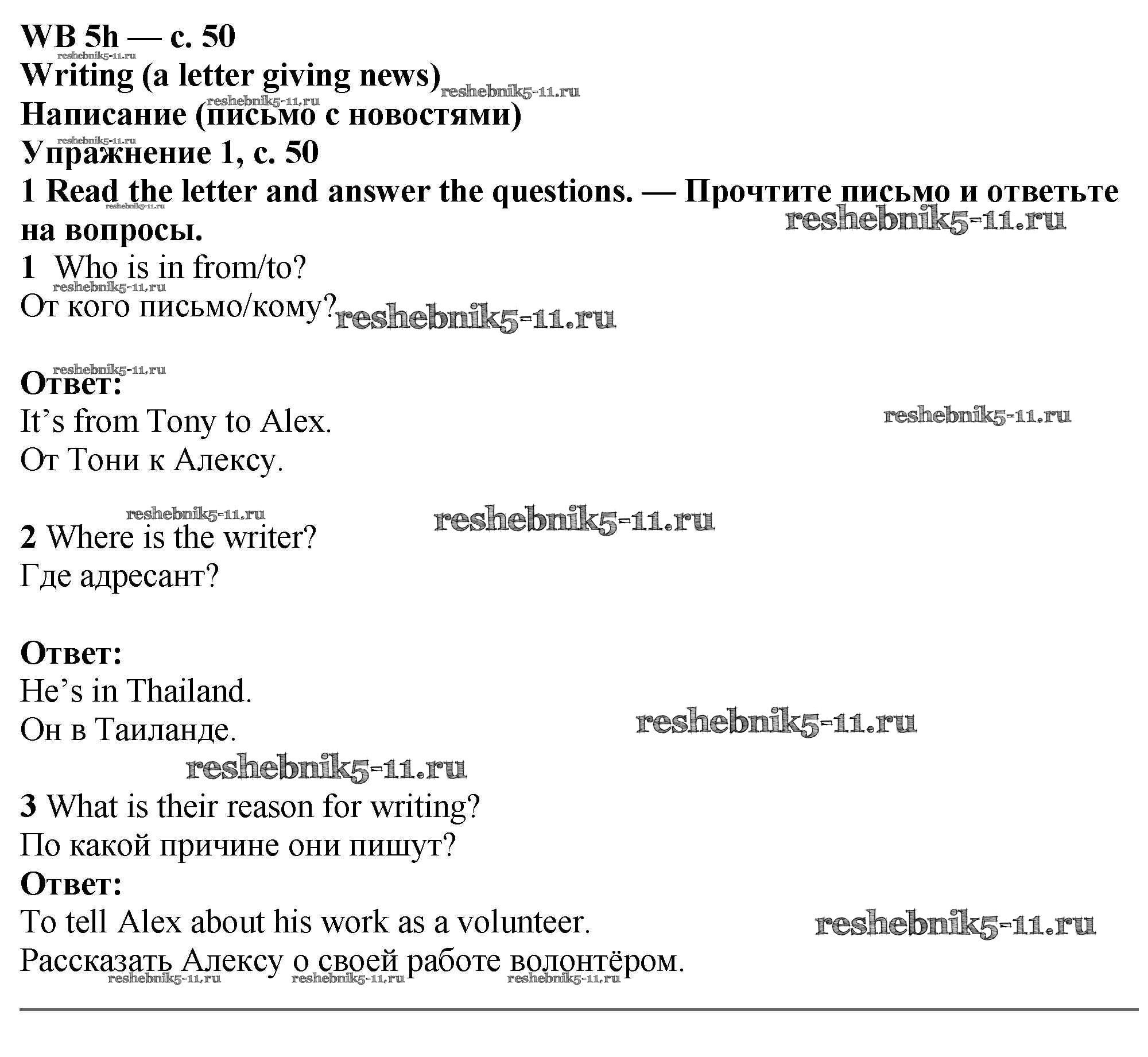Готовая домашняя работа с ответами по Английскому языку за 6 класс Мильруд, Эванс, Дули, Баранова, Копылова Рабочая тетрадь Starlight Углубленный уровень Просвещение 2020 ФГОС - Страницы 50
