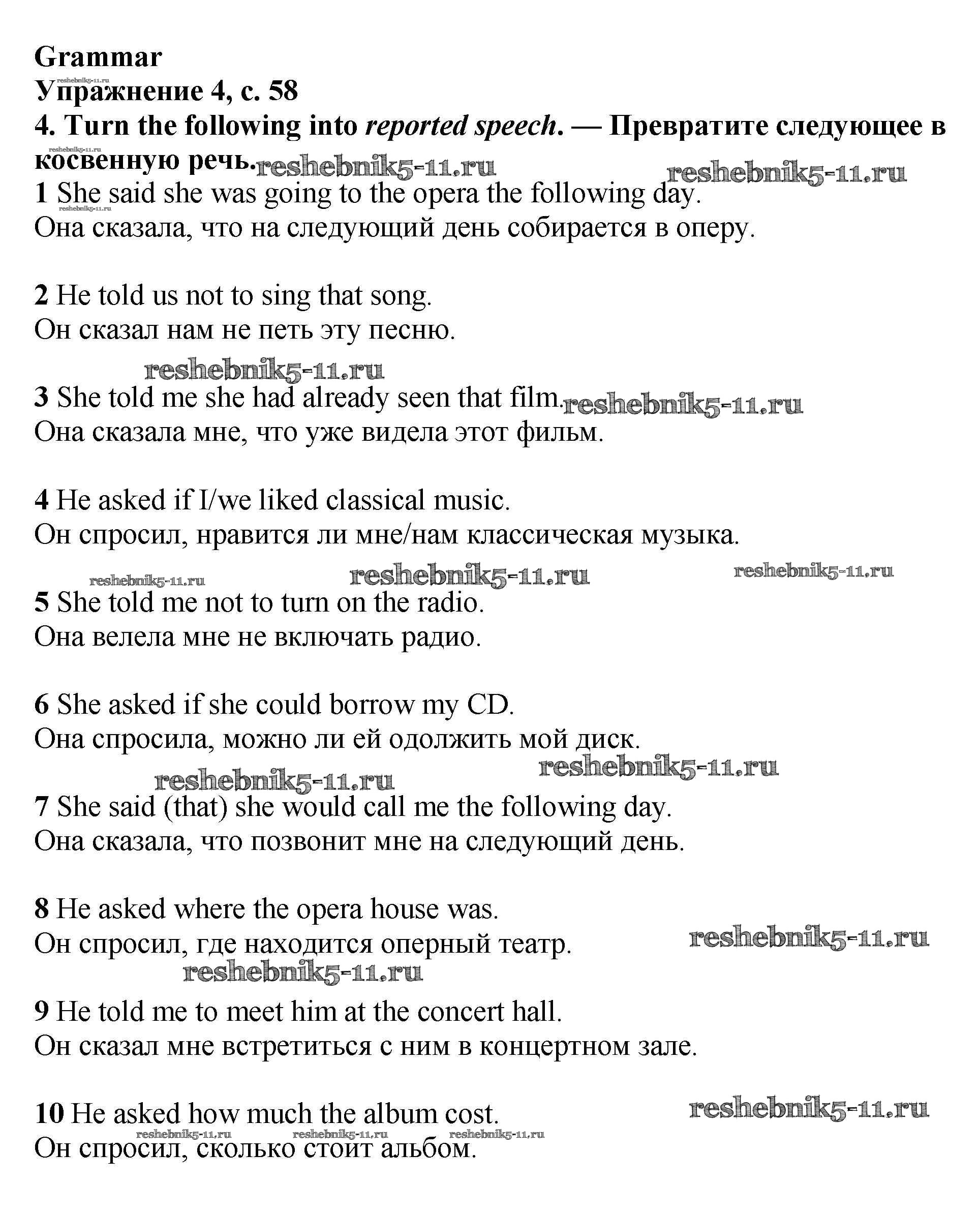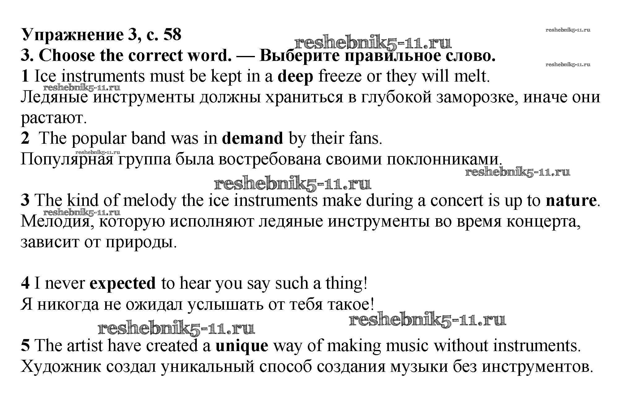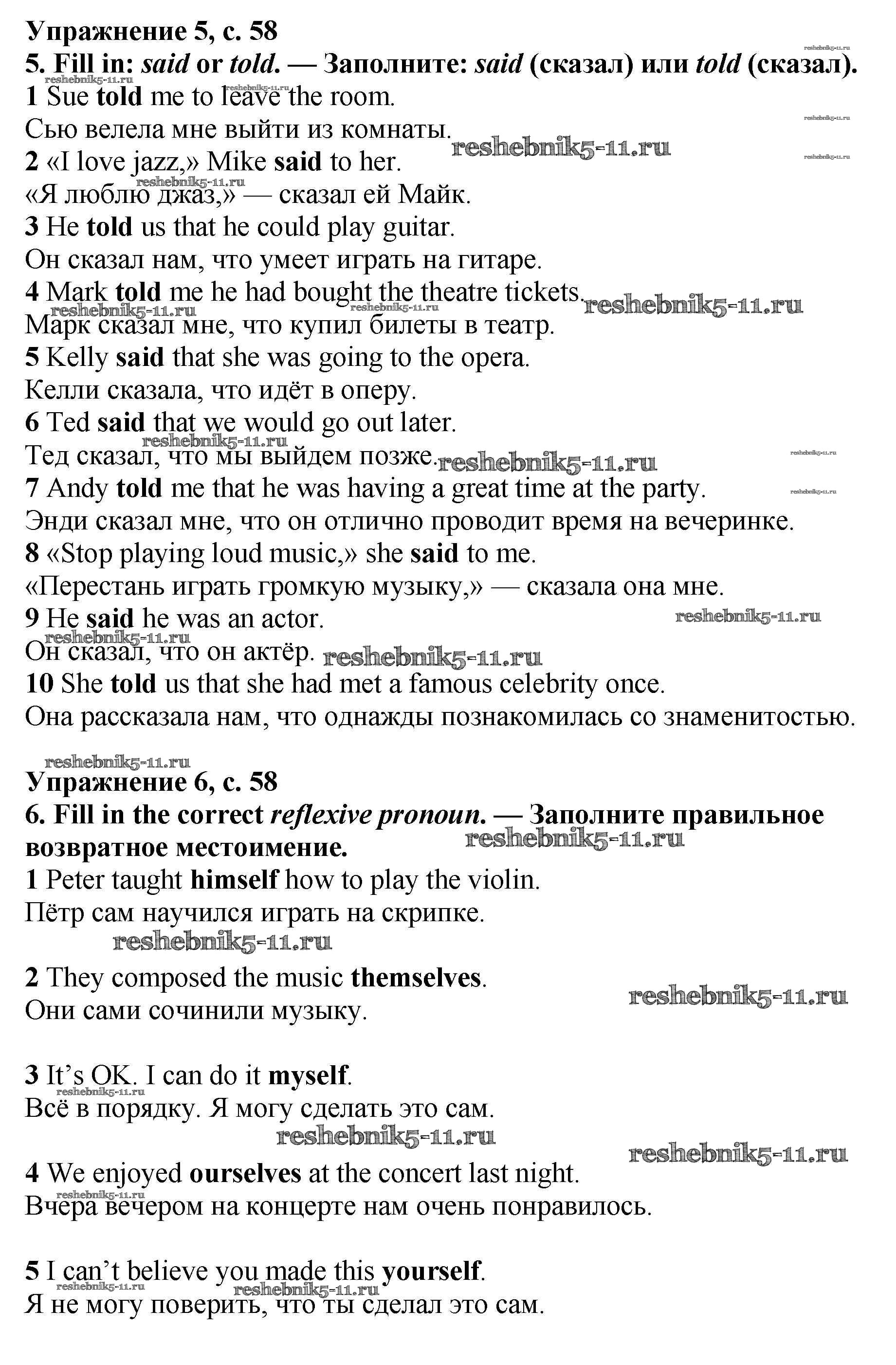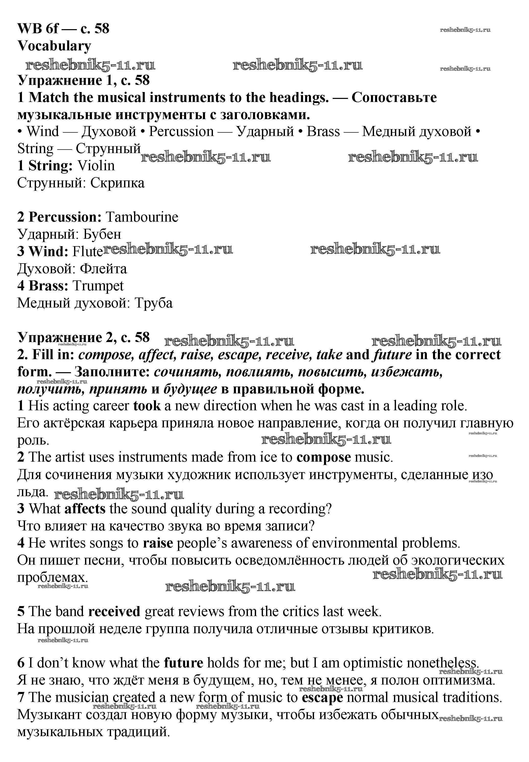 Готовая домашняя работа с ответами по Английскому языку за 6 класс Мильруд, Эванс, Дули, Баранова, Копылова Рабочая тетрадь Starlight Углубленный уровень Просвещение 2020 ФГОС - Страницы 58