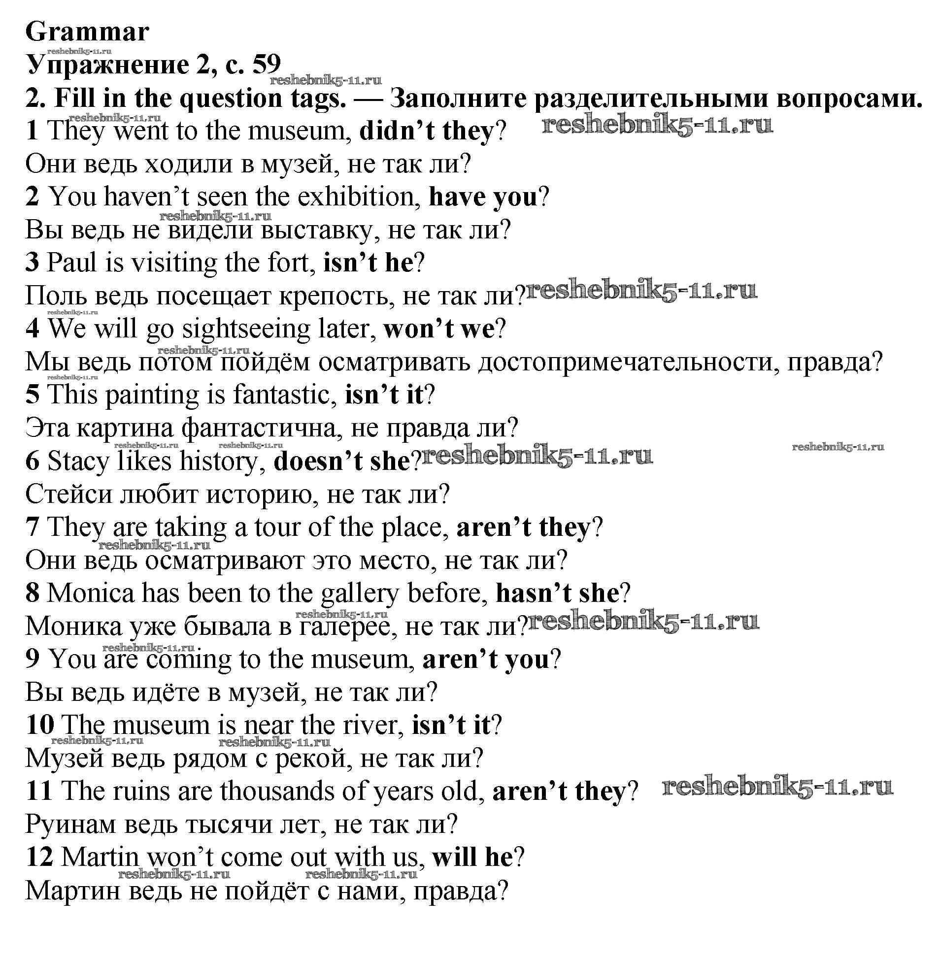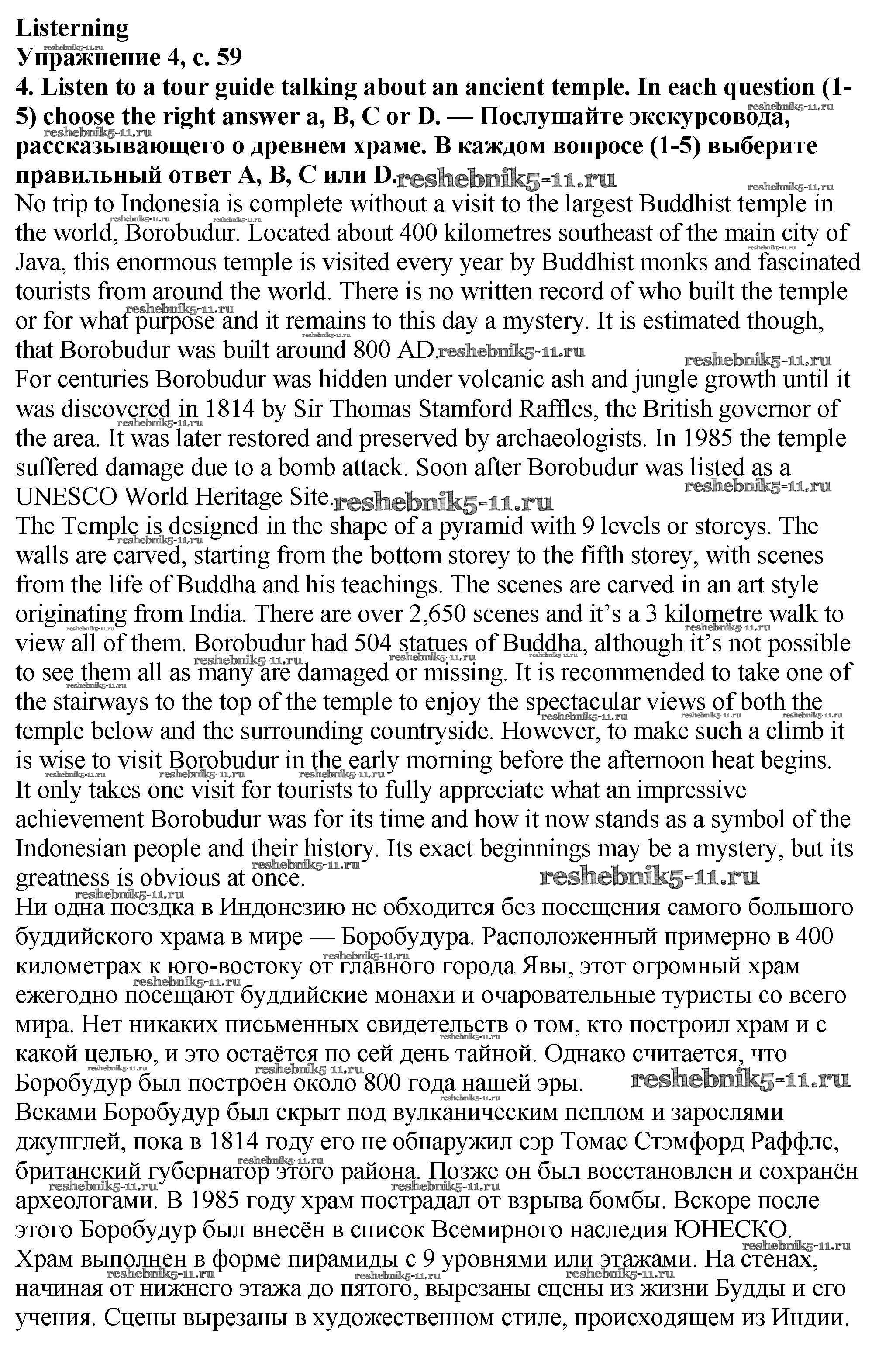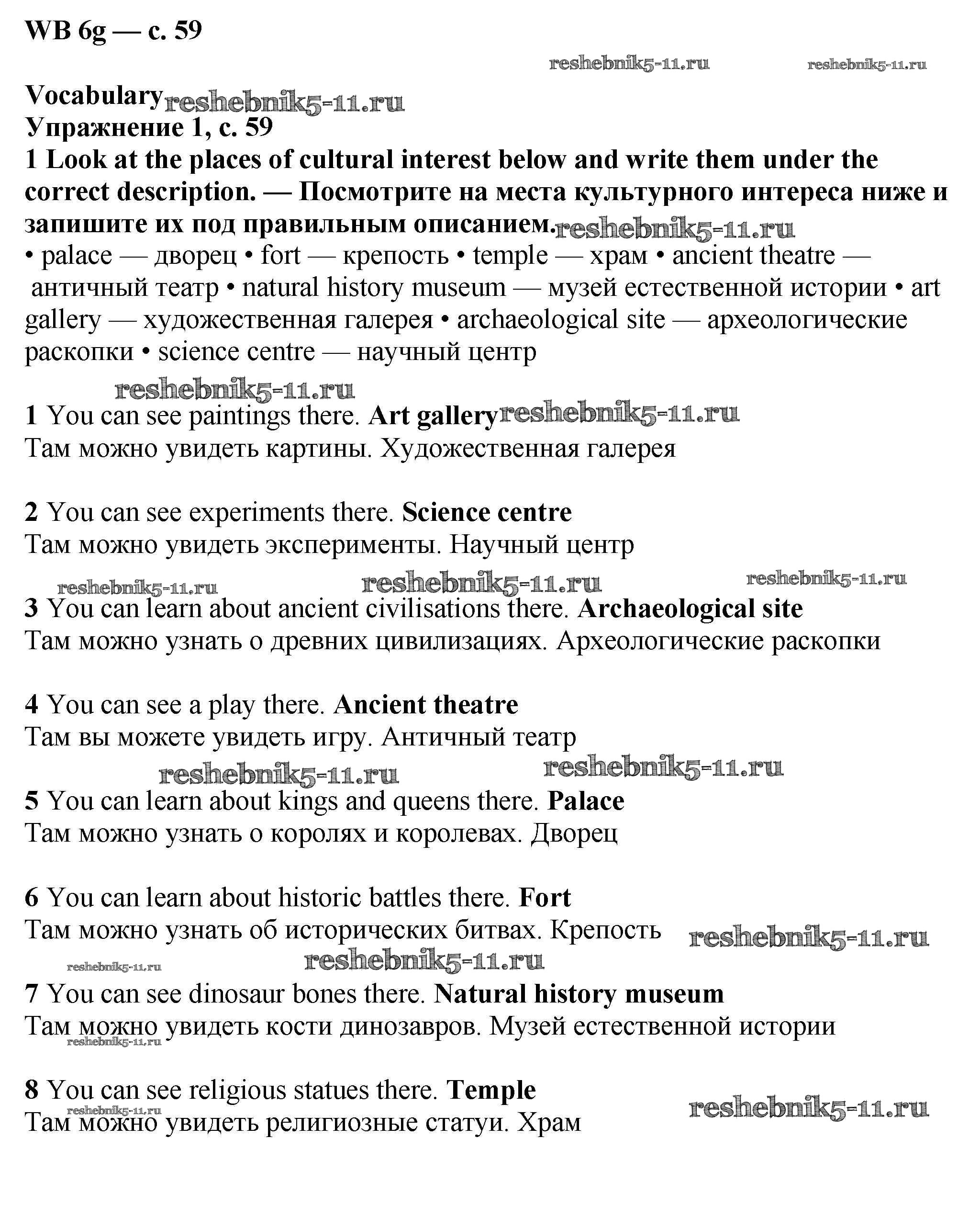 Готовая домашняя работа с ответами по Английскому языку за 6 класс Мильруд, Эванс, Дули, Баранова, Копылова Рабочая тетрадь Starlight Углубленный уровень Просвещение 2020 ФГОС - Страницы 59