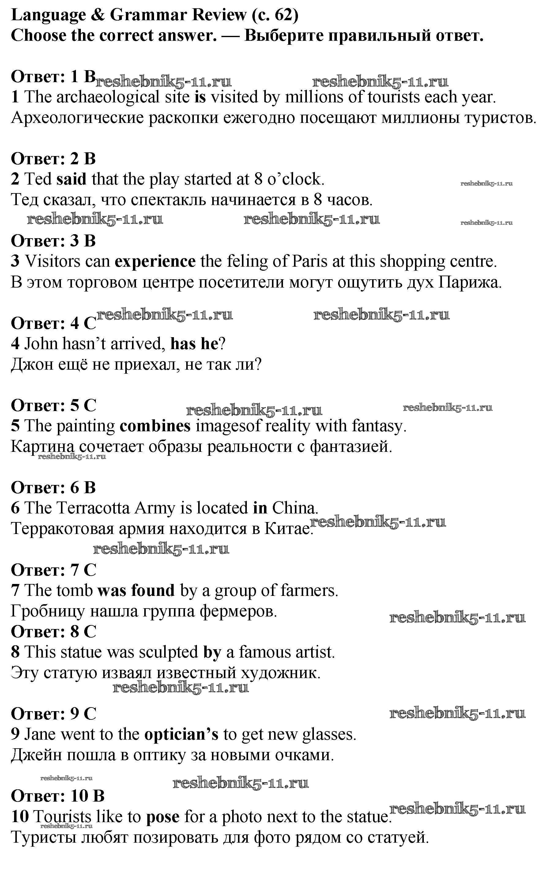 Готовая домашняя работа с ответами по Английскому языку за 6 класс Мильруд, Эванс, Дули, Баранова, Копылова Рабочая тетрадь Starlight Углубленный уровень Просвещение 2020 ФГОС - Страницы 62