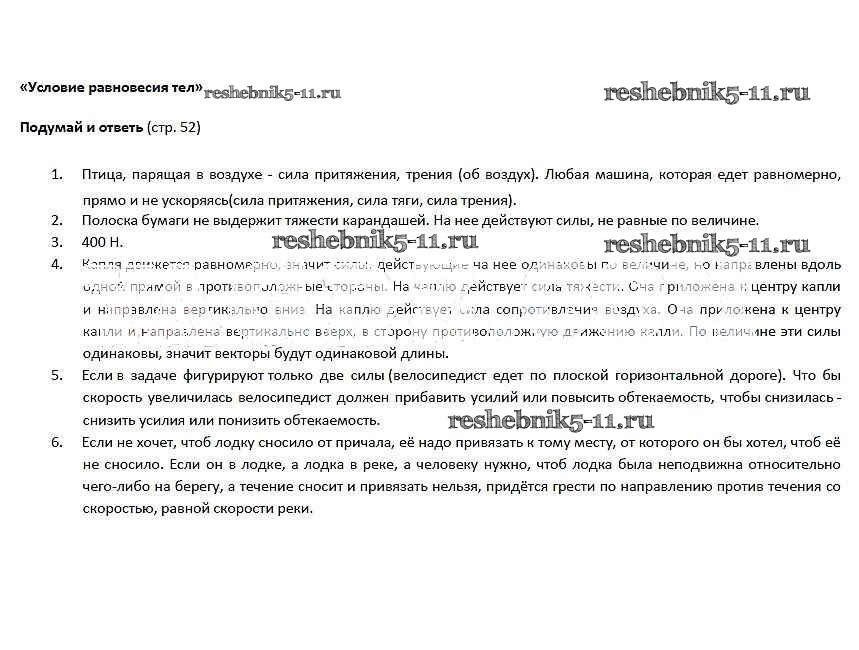 Готовая домашняя работа с ответами по Физике за 5, 6 класс Гуревич, Исаев, Понтак Учебник Дрофа 2011 - Страницы 52