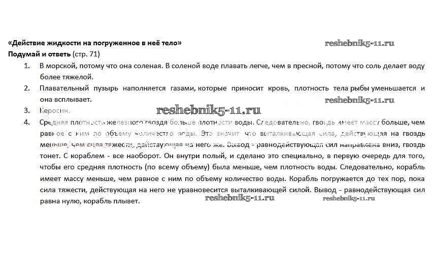 Готовая домашняя работа с ответами по Физике за 5, 6 класс Гуревич, Исаев, Понтак Учебник Дрофа 2011 - Страницы 71