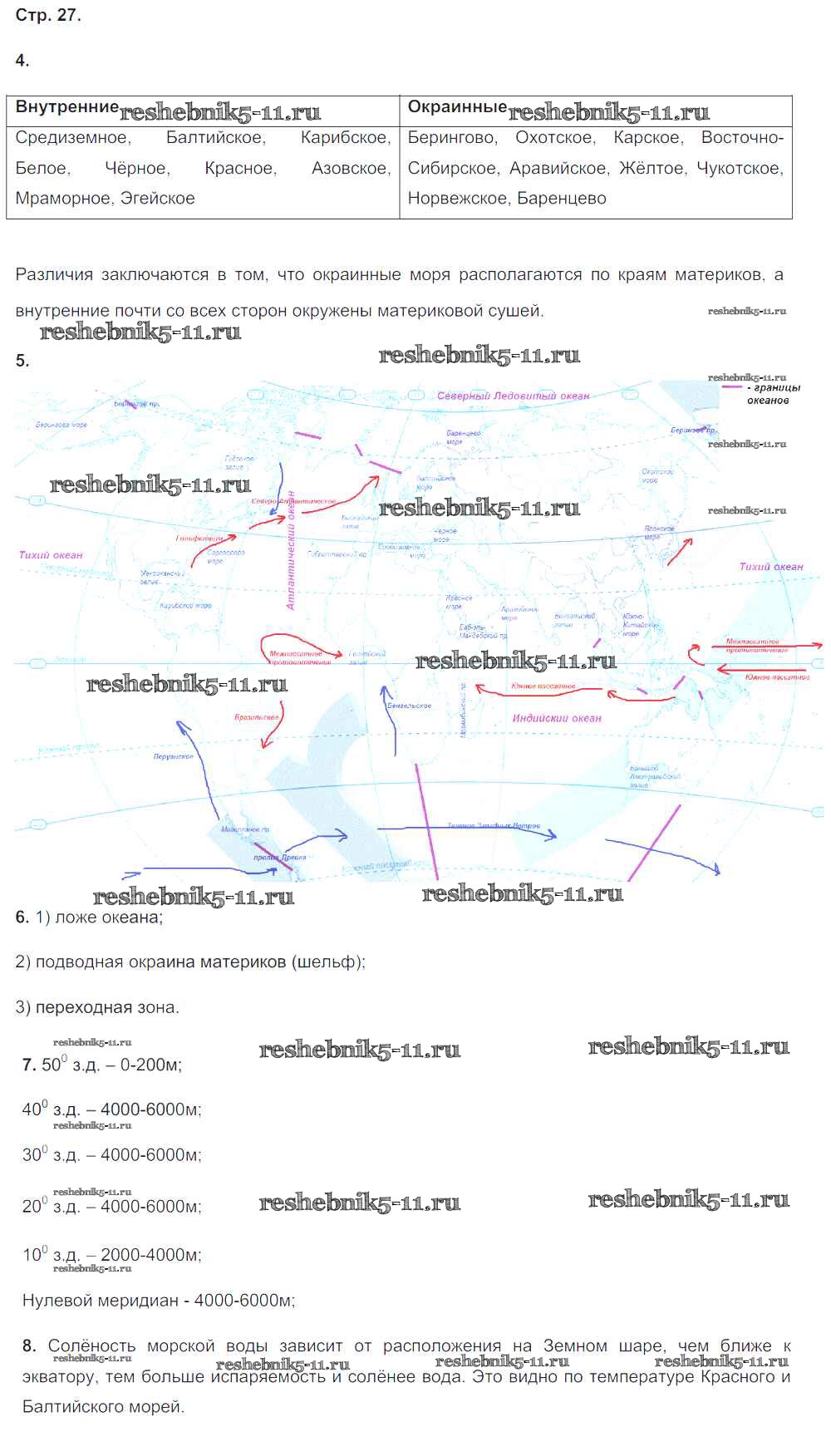 Готовая домашняя работа с ответами по Географии за 6 класс Баринова, Суслов Рабочая тетрадь с контурными картами УМК Экзамен 2010 ФГОС - Страницы 27