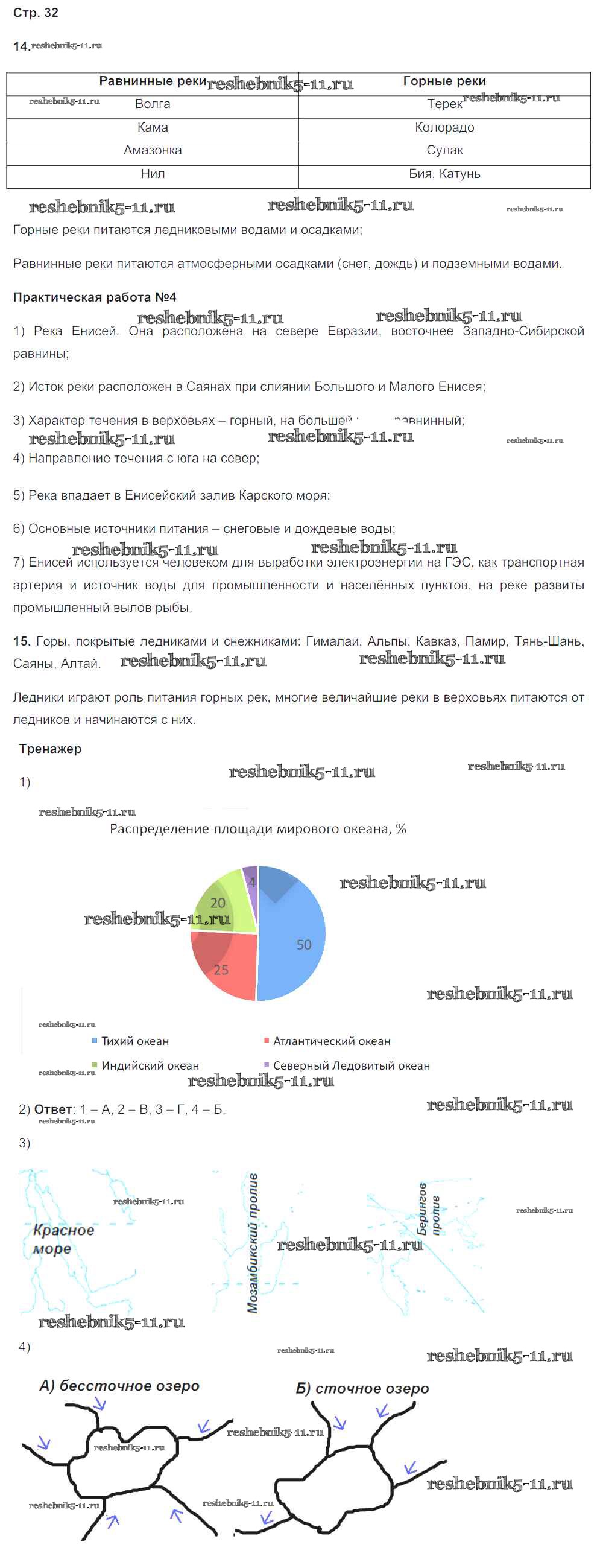 Готовая домашняя работа с ответами по Географии за 6 класс Баринова, Суслов Рабочая тетрадь с контурными картами УМК Экзамен 2010 ФГОС - Страницы 32