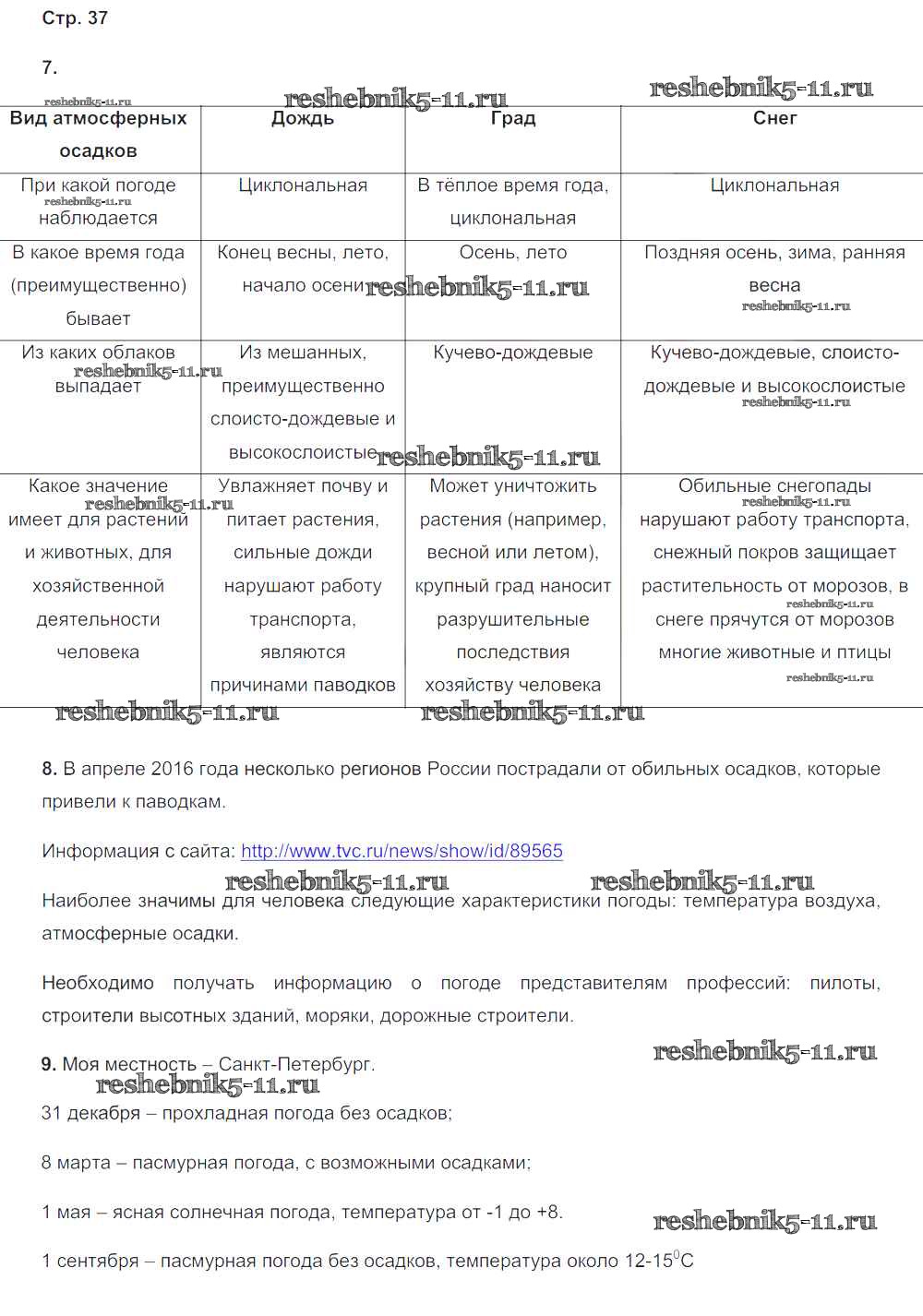 Готовая домашняя работа с ответами по Географии за 6 класс Баринова, Суслов Рабочая тетрадь с контурными картами УМК Экзамен 2010 ФГОС - Страницы 37