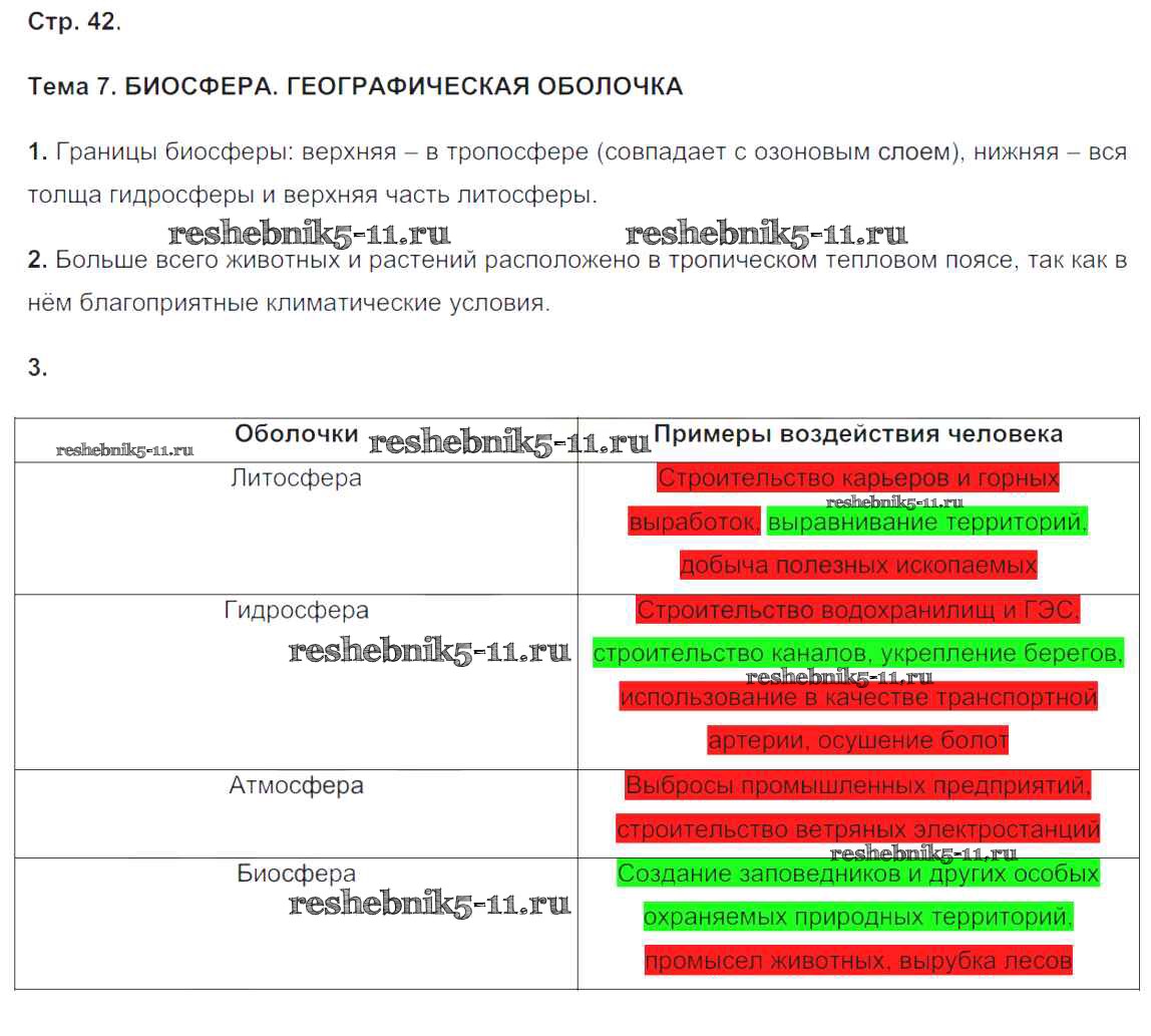 Готовая домашняя работа с ответами по Географии за 6 класс Баринова, Суслов Рабочая тетрадь с контурными картами УМК Экзамен 2010 ФГОС - Страницы 42