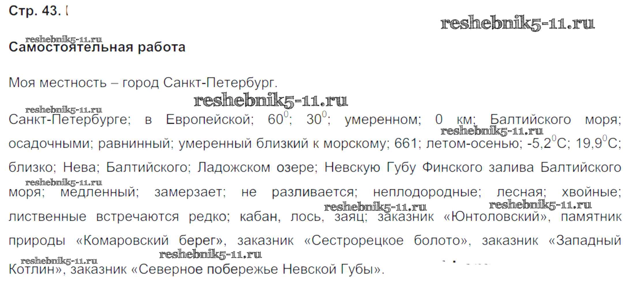 Готовая домашняя работа с ответами по Географии за 6 класс Баринова, Суслов Рабочая тетрадь с контурными картами УМК Экзамен 2010 ФГОС - Страницы 43