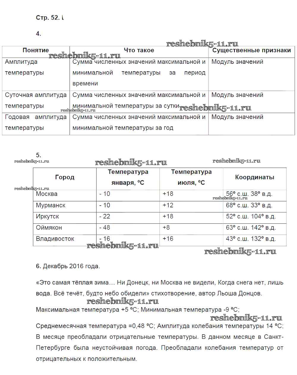 Готовая домашняя работа с ответами по Географии за 6 класс Болотникова Тетрадь-практикум Инновационная школа Русское слово 2017 ФГОС - Страницы 52