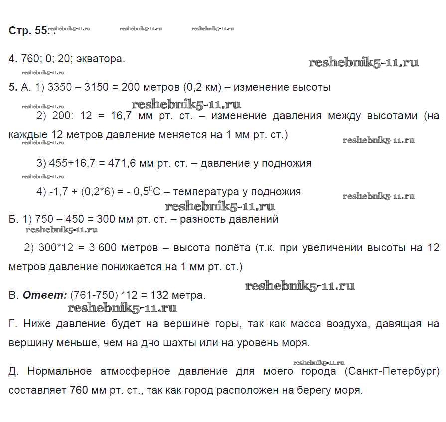 Готовая домашняя работа с ответами по Географии за 6 класс Болотникова Тетрадь-практикум Инновационная школа Русское слово 2017 ФГОС - Страницы 55