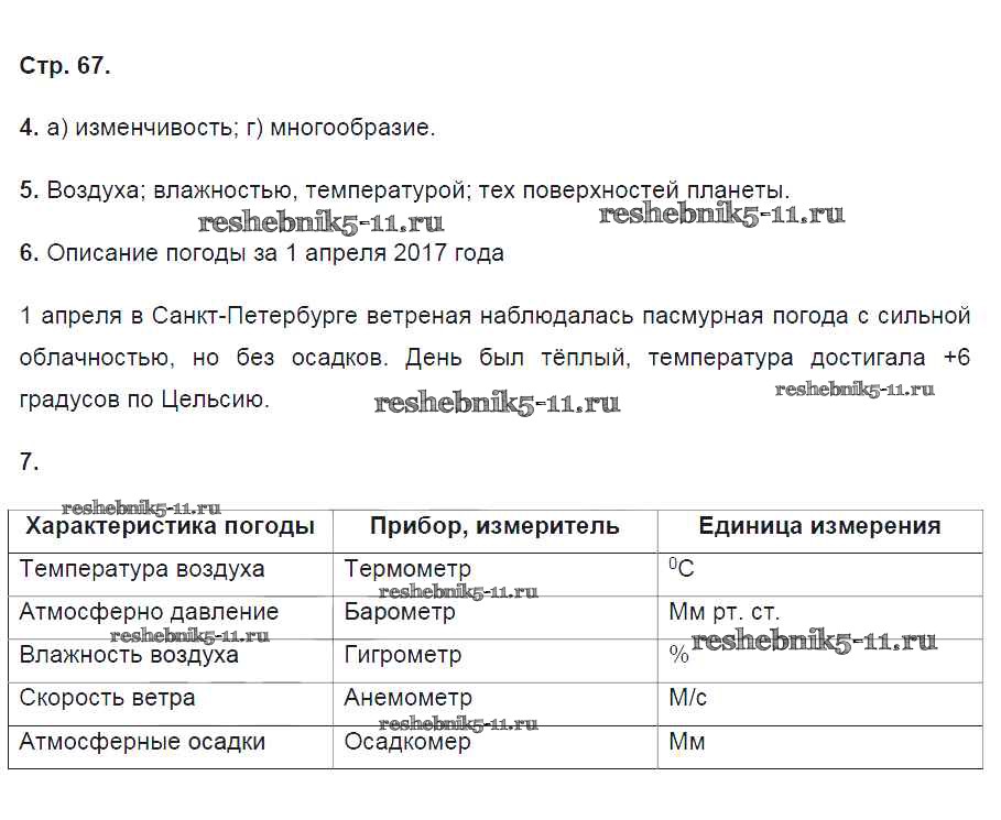 Готовая домашняя работа с ответами по Географии за 6 класс Болотникова Тетрадь-практикум Инновационная школа Русское слово 2017 ФГОС - Страницы 67