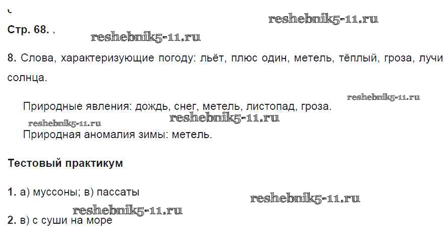 Готовая домашняя работа с ответами по Географии за 6 класс Болотникова Тетрадь-практикум Инновационная школа Русское слово 2017 ФГОС - Страницы 68