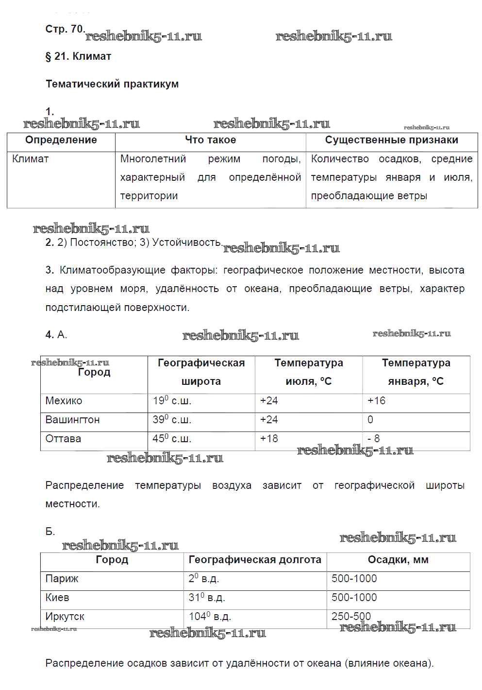 Готовая домашняя работа с ответами по Географии за 6 класс Болотникова Тетрадь-практикум Инновационная школа Русское слово 2017 ФГОС - Страницы 70