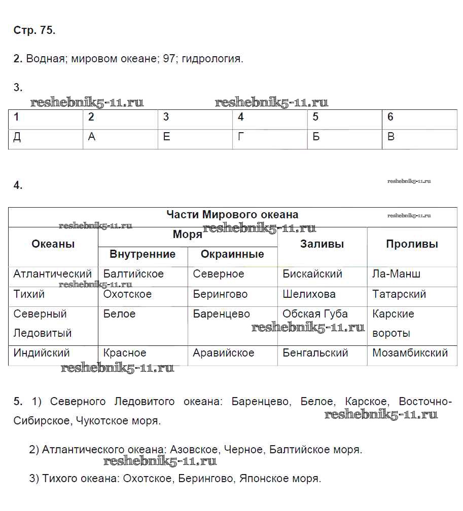 Готовая домашняя работа с ответами по Географии за 6 класс Болотникова Тетрадь-практикум Инновационная школа Русское слово 2017 ФГОС - Страницы 75