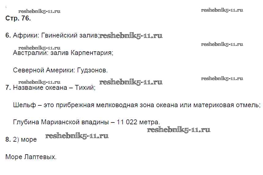 Готовая домашняя работа с ответами по Географии за 6 класс Болотникова Тетрадь-практикум Инновационная школа Русское слово 2017 ФГОС - Страницы 76