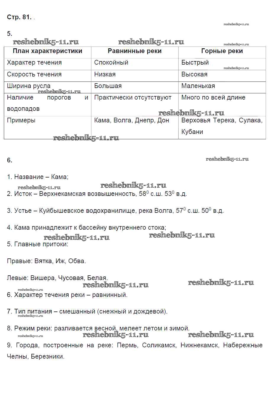 Готовая домашняя работа с ответами по Географии за 6 класс Болотникова Тетрадь-практикум Инновационная школа Русское слово 2017 ФГОС - Страницы 81