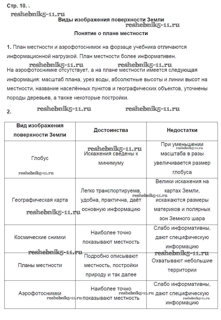 Готовая домашняя работа с ответами по Географии за 6 класс Карташева, Курчина Рабочая тетрадь Вертикаль Дрофа 2020 ФГОС - Страницы 10