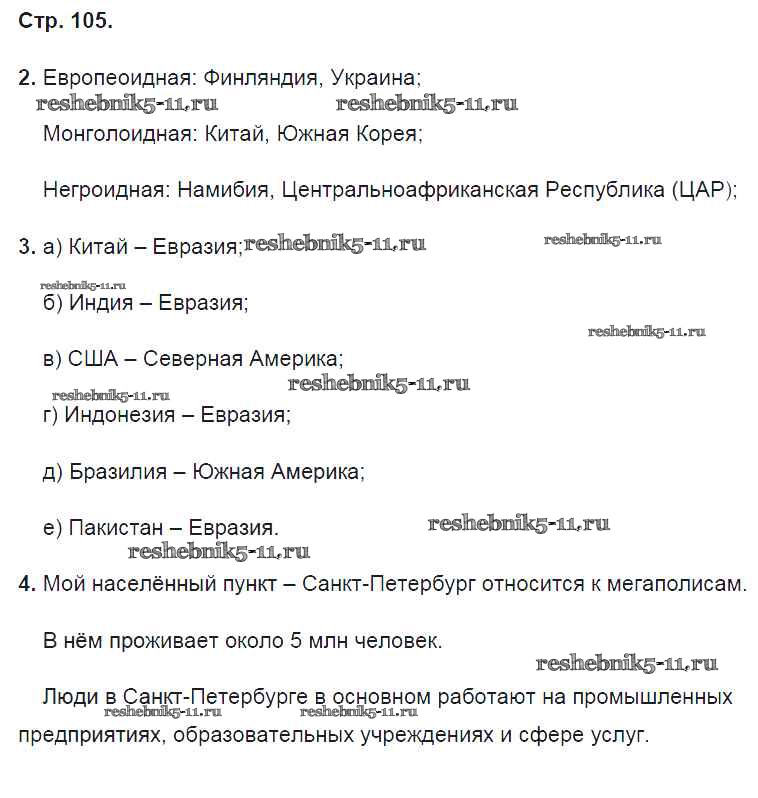 Готовая домашняя работа с ответами по Географии за 6 класс Карташева, Курчина Рабочая тетрадь Вертикаль Дрофа 2020 ФГОС - Страницы 105