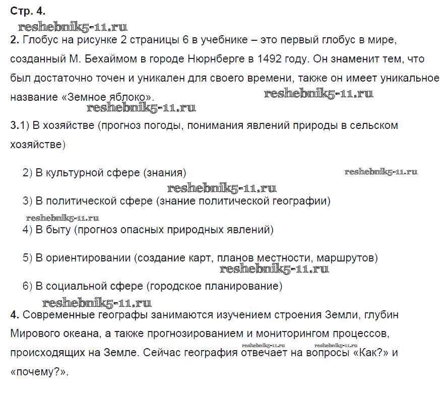 Готовая домашняя работа с ответами по Географии за 6 класс Карташева, Курчина Рабочая тетрадь Вертикаль Дрофа 2020 ФГОС - Страницы 4