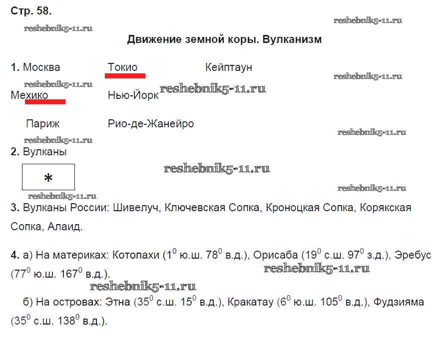 Готовая домашняя работа с ответами по Географии за 6 класс Карташева, Курчина Рабочая тетрадь Вертикаль Дрофа 2020 ФГОС - Страницы 58