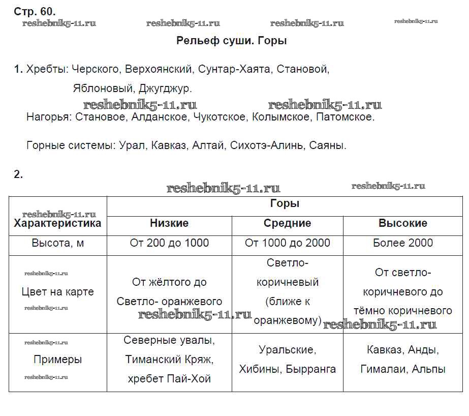 Готовая домашняя работа с ответами по Географии за 6 класс Карташева, Курчина Рабочая тетрадь Вертикаль Дрофа 2020 ФГОС - Страницы 60