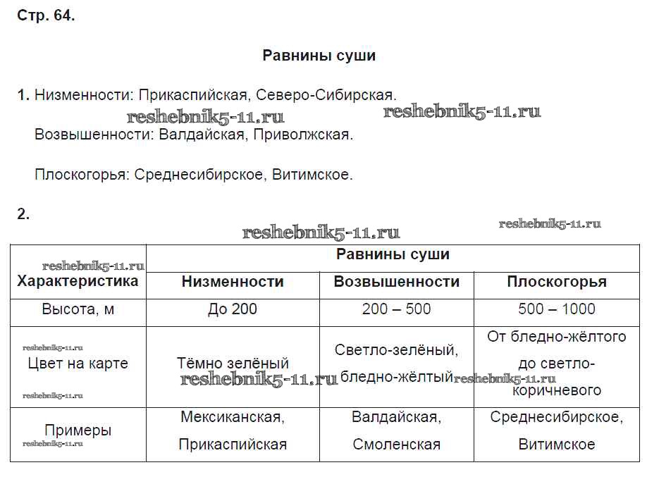 Готовая домашняя работа с ответами по Географии за 6 класс Карташева, Курчина Рабочая тетрадь Вертикаль Дрофа 2020 ФГОС - Страницы 64