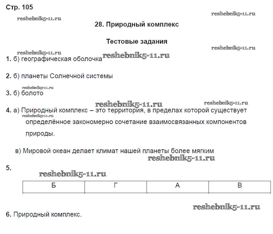 Готовая домашняя работа с ответами по Географии за 6 класс Домогацких Рабочая тетрадь Инновационная школа Русское слово 2019 ФГОС - Страницы 105