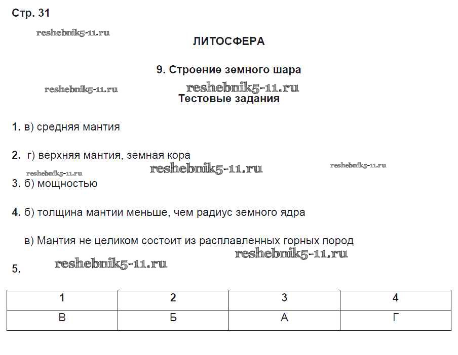 Готовая домашняя работа с ответами по Географии за 6 класс Домогацких Рабочая тетрадь Инновационная школа Русское слово 2019 ФГОС - Страницы 31