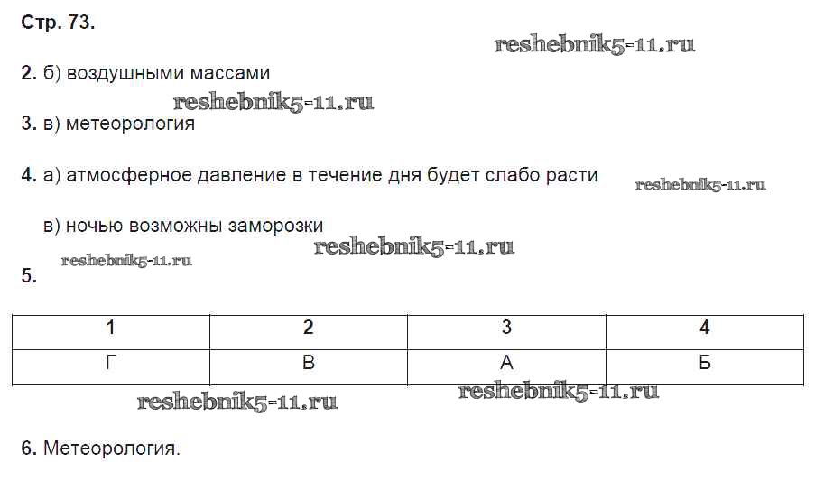Готовая домашняя работа с ответами по Географии за 6 класс Домогацких Рабочая тетрадь Инновационная школа Русское слово 2019 ФГОС - Страницы 73