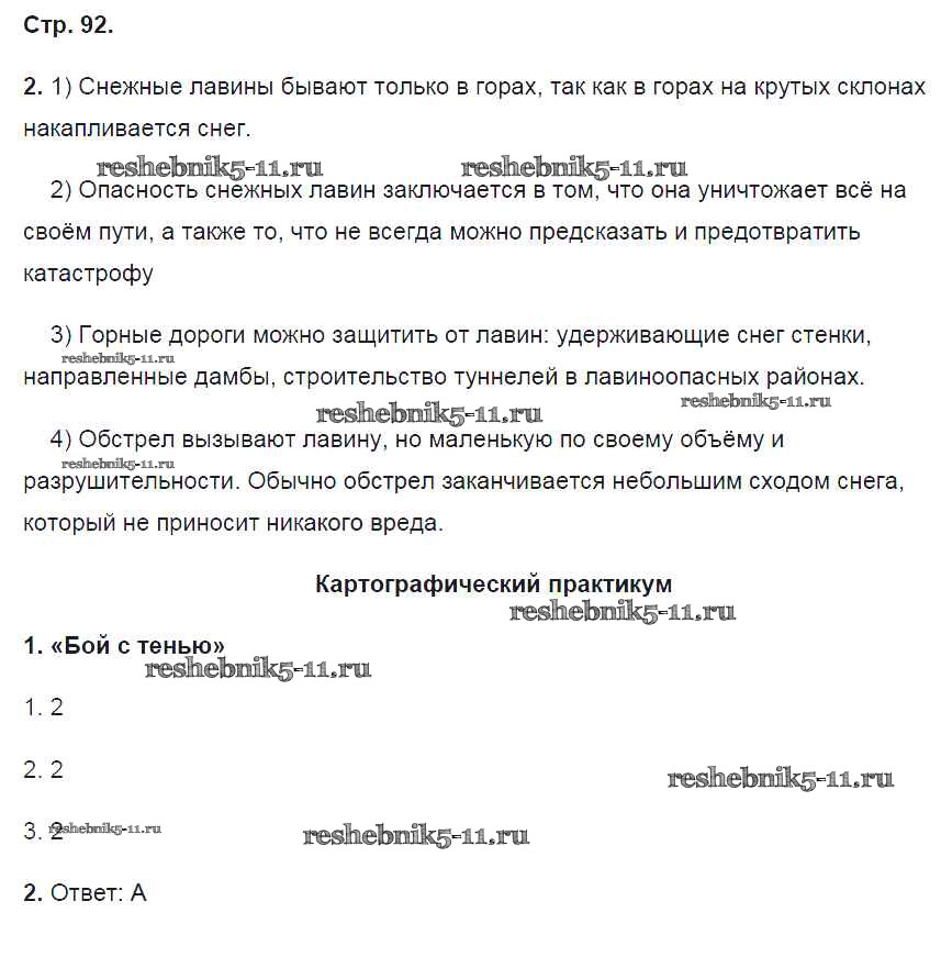 Готовая домашняя работа с ответами по Географии за 6 класс Домогацких Рабочая тетрадь Инновационная школа Русское слово 2019 ФГОС - Страницы 92
