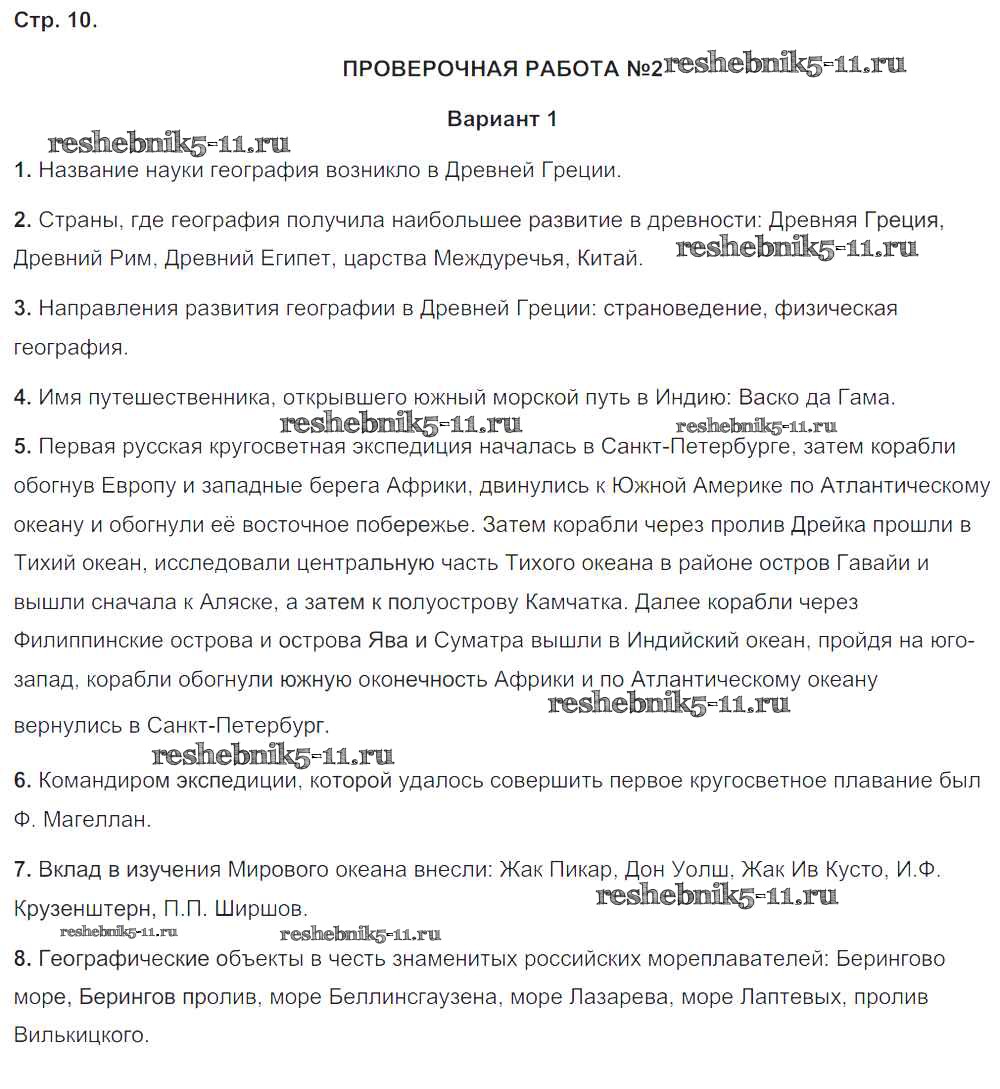 Готовая домашняя работа с ответами по Географии за 5, 6 класс Барабанов Тетрадь-экзаменатор Сферы Просвещение 2017 ФГОС - Страницы 10