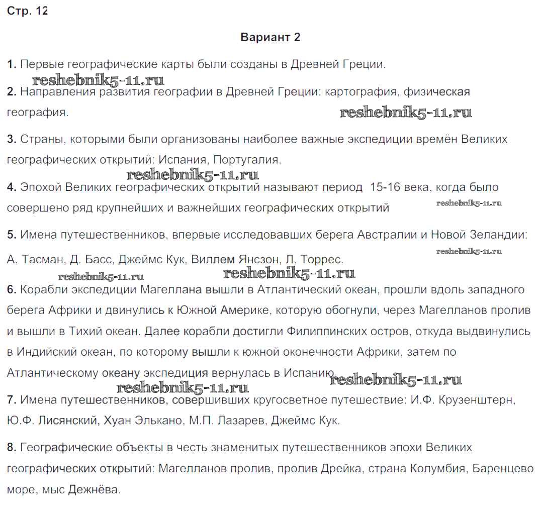 Готовая домашняя работа с ответами по Географии за 5, 6 класс Барабанов Тетрадь-экзаменатор Сферы Просвещение 2017 ФГОС - Страницы 12