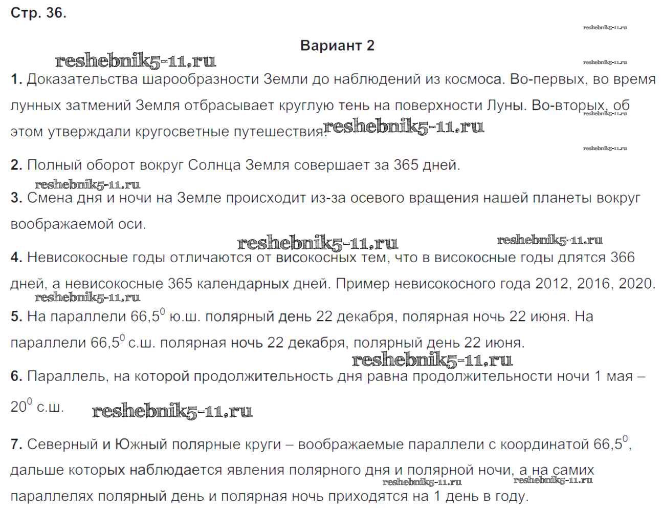 Готовая домашняя работа с ответами по Географии за 5, 6 класс Барабанов Тетрадь-экзаменатор Сферы Просвещение 2017 ФГОС - Страницы 36