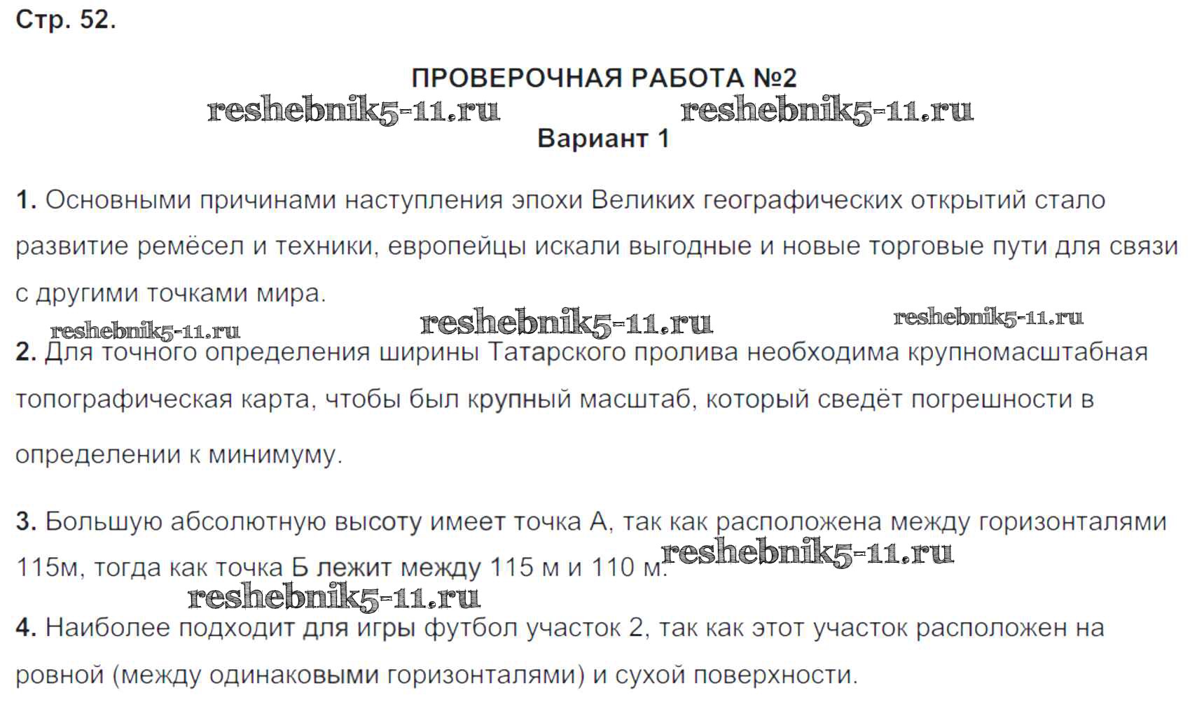 Готовая домашняя работа с ответами по Географии за 5, 6 класс Барабанов Тетрадь-экзаменатор Сферы Просвещение 2017 ФГОС - Страницы 52