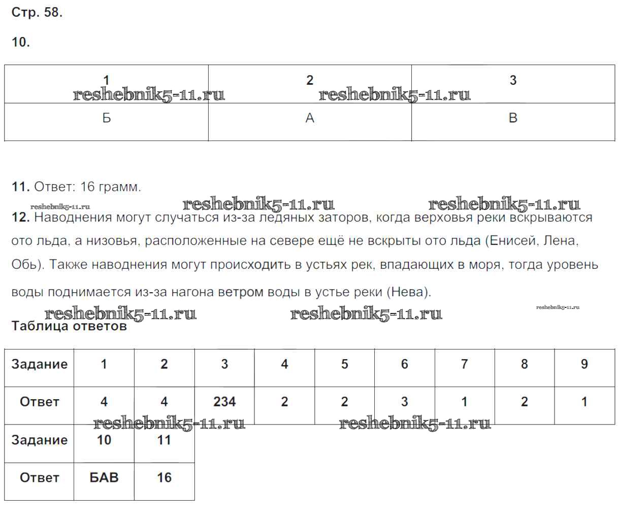 Готовая домашняя работа с ответами по Географии за 5, 6 класс Барабанов Тетрадь-экзаменатор Сферы Просвещение 2017 ФГОС - Страницы 58