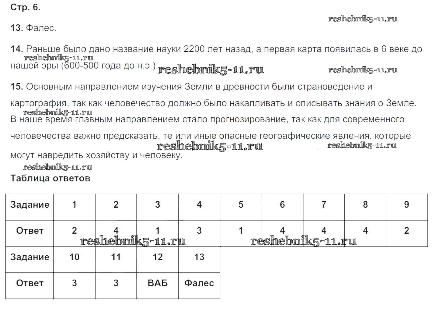 Готовая домашняя работа с ответами по Географии за 5, 6 класс Барабанов Тетрадь-экзаменатор Сферы Просвещение 2017 ФГОС - Страницы 6