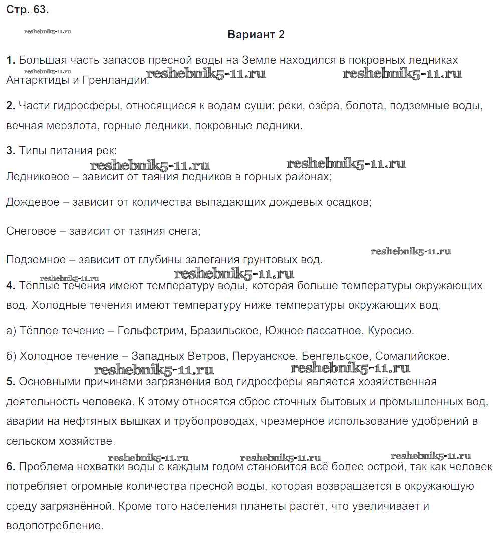 Готовая домашняя работа с ответами по Географии за 5, 6 класс Барабанов Тетрадь-экзаменатор Сферы Просвещение 2017 ФГОС - Страницы 63