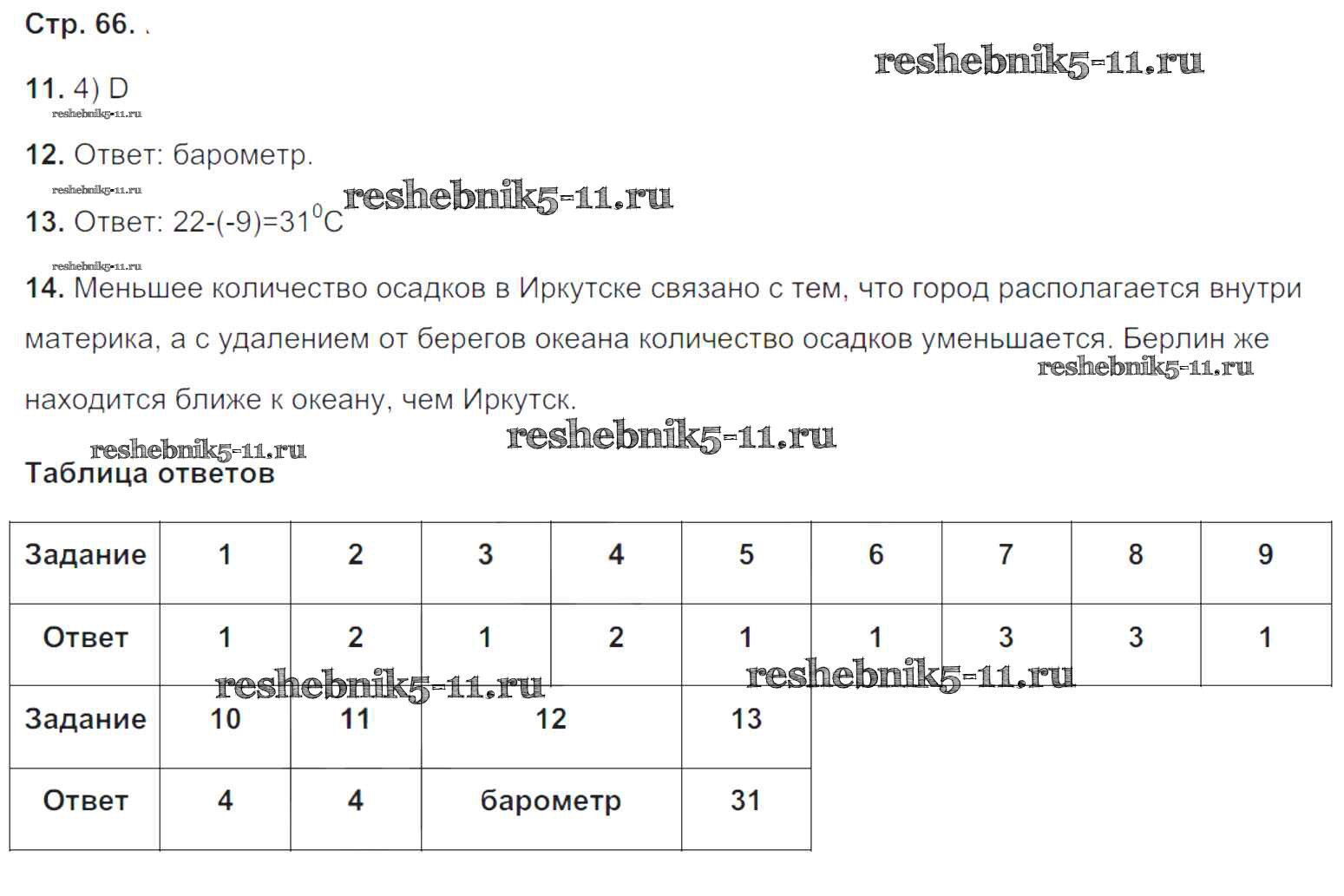 Готовая домашняя работа с ответами по Географии за 5, 6 класс Барабанов Тетрадь-экзаменатор Сферы Просвещение 2017 ФГОС - Страницы 66
