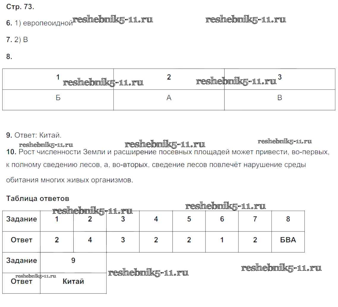 Готовая домашняя работа с ответами по Географии за 5, 6 класс Барабанов Тетрадь-экзаменатор Сферы Просвещение 2017 ФГОС - Страницы 73