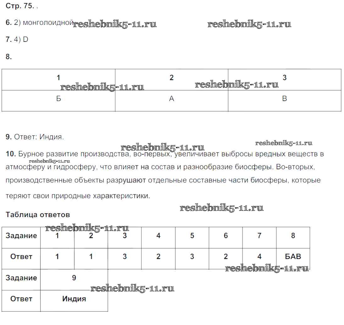 Готовая домашняя работа с ответами по Географии за 5, 6 класс Барабанов Тетрадь-экзаменатор Сферы Просвещение 2017 ФГОС - Страницы 75