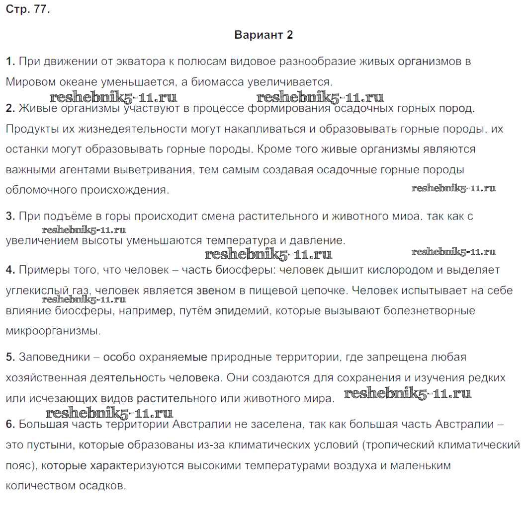 Готовая домашняя работа с ответами по Географии за 5, 6 класс Барабанов Тетрадь-экзаменатор Сферы Просвещение 2017 ФГОС - Страницы 77