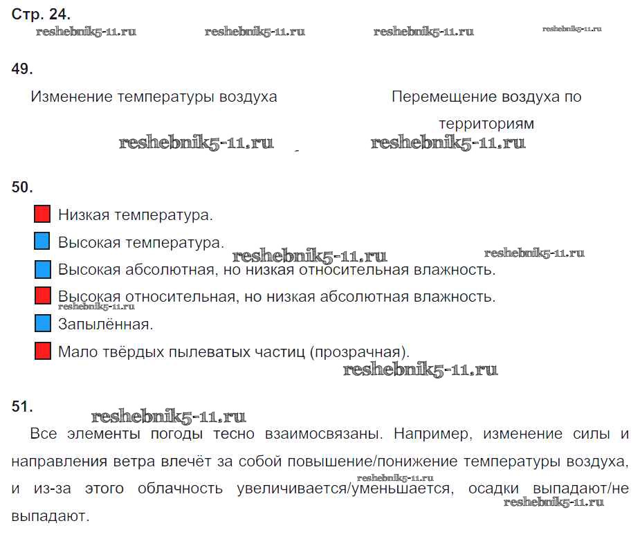 Готовая домашняя работа с ответами по Географии за 6 класс Дронов, Савельева Рабочая тетрадь Вертикаль Дрофа 2016 ФГОС - Атмосфера (страницы тетради) 24