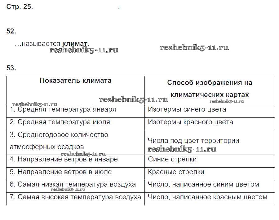 Готовая домашняя работа с ответами по Географии за 6 класс Дронов, Савельева Рабочая тетрадь Вертикаль Дрофа 2016 ФГОС - Атмосфера (страницы тетради) 25