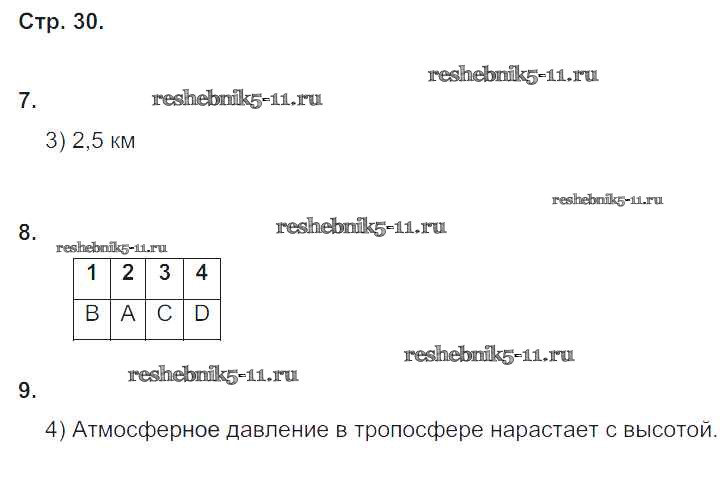 Готовая домашняя работа с ответами по Географии за 6 класс Дронов, Савельева Рабочая тетрадь Вертикаль Дрофа 2016 ФГОС - Атмосфера (страницы тетради) 30