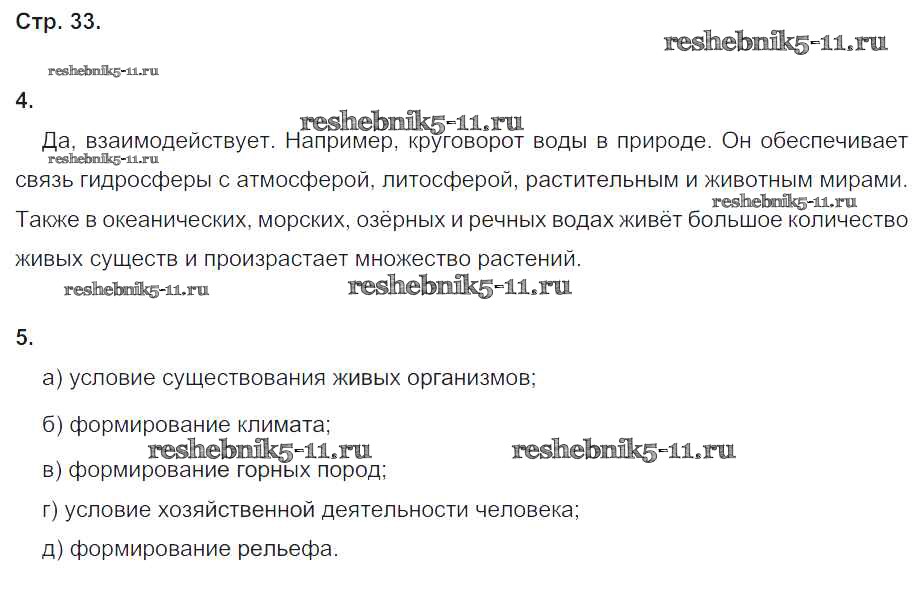 Готовая домашняя работа с ответами по Географии за 6 класс Дронов, Савельева Рабочая тетрадь Вертикаль Дрофа 2016 ФГОС - Гидросфера (страницы тетради) 33