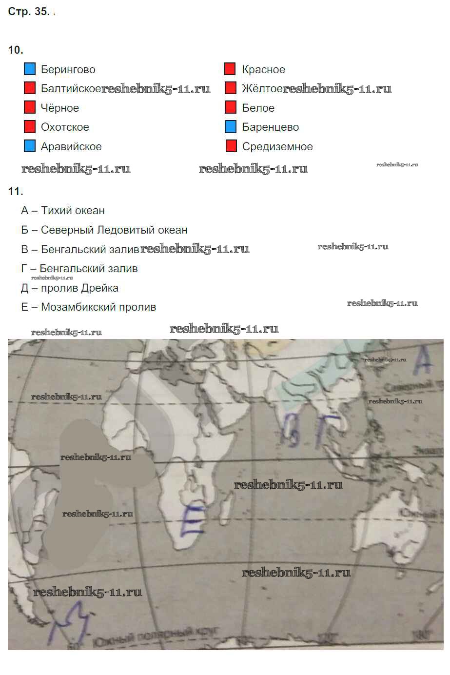 Готовая домашняя работа с ответами по Географии за 6 класс Дронов, Савельева Рабочая тетрадь Вертикаль Дрофа 2016 ФГОС - Гидросфера (страницы тетради) 35