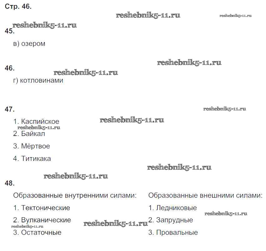 Готовая домашняя работа с ответами по Географии за 6 класс Дронов, Савельева Рабочая тетрадь Вертикаль Дрофа 2016 ФГОС - Гидросфера (страницы тетради) 46