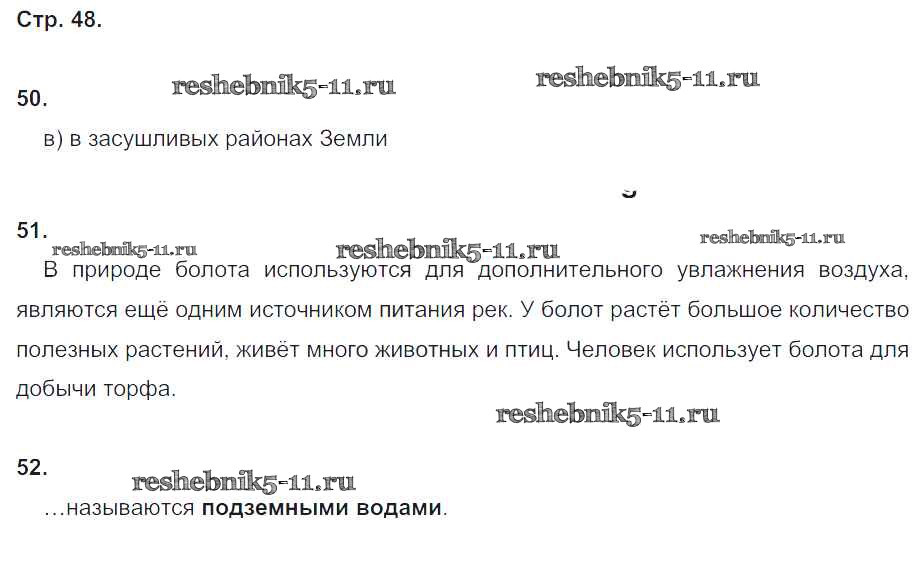 Готовая домашняя работа с ответами по Географии за 6 класс Дронов, Савельева Рабочая тетрадь Вертикаль Дрофа 2016 ФГОС - Гидросфера (страницы тетради) 48