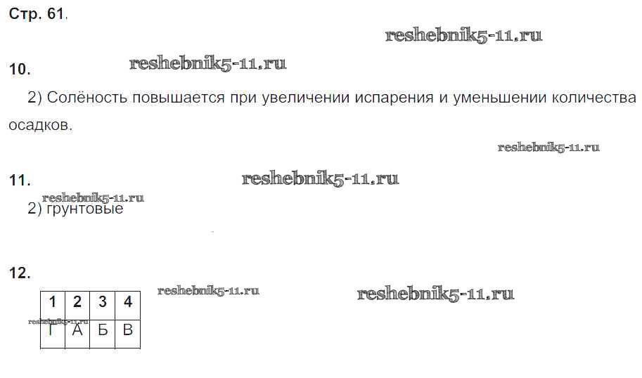 Готовая домашняя работа с ответами по Географии за 6 класс Дронов, Савельева Рабочая тетрадь Вертикаль Дрофа 2016 ФГОС - Гидросфера (страницы тетради) 61