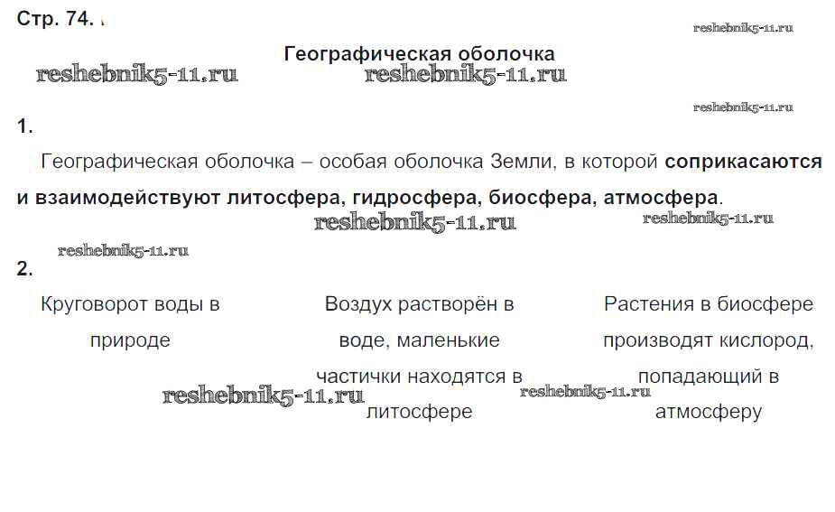Готовая домашняя работа с ответами по Географии за 6 класс Дронов, Савельева Рабочая тетрадь Вертикаль Дрофа 2016 ФГОС - Географическая оболочка (страницы тетради) 74